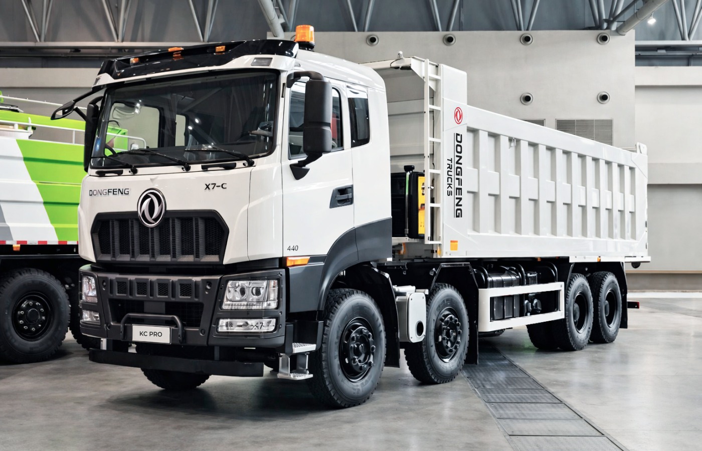 Обновленный KC Pro в дизайне X-Digital, известный также под внутренним кодом X7-C, будет производиться на заводе Dongfeng Commercial Vehicle Xinjiang Co., Ltd. Представленный в исполнении с самосвальным кузовом, автомобиль мощностью 440 л.с. разработан специально для работы в тяжелых условиях строек, карьеров и шахт. Модель ориентирована на рынки с высокими нагрузками и прагматичными требованиями к обслуживанию — в том числе для стран Восточной Европы, Юго-Восточной Азии, Африки и других развивающихся регионов.