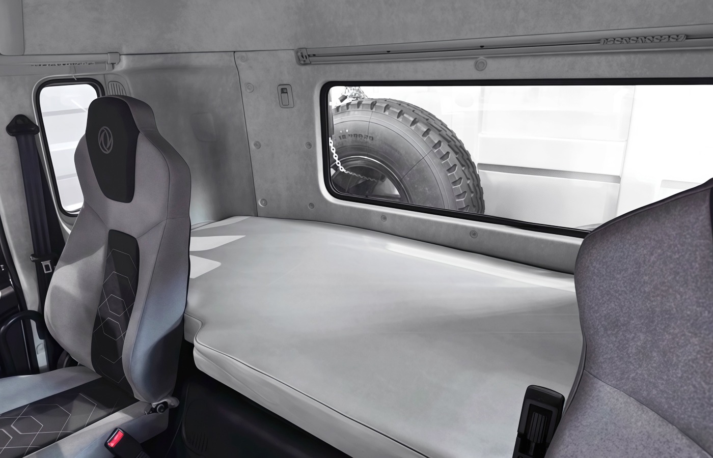 За сиденьями расположено спальное место шириной 850 мм, оснащённое светильником, крючками для одежды и нишами для хранения. В салоне предусмотрены подстаканники и дополнительные отсеки, а снаружи кабины установлен инструментальный ящик.