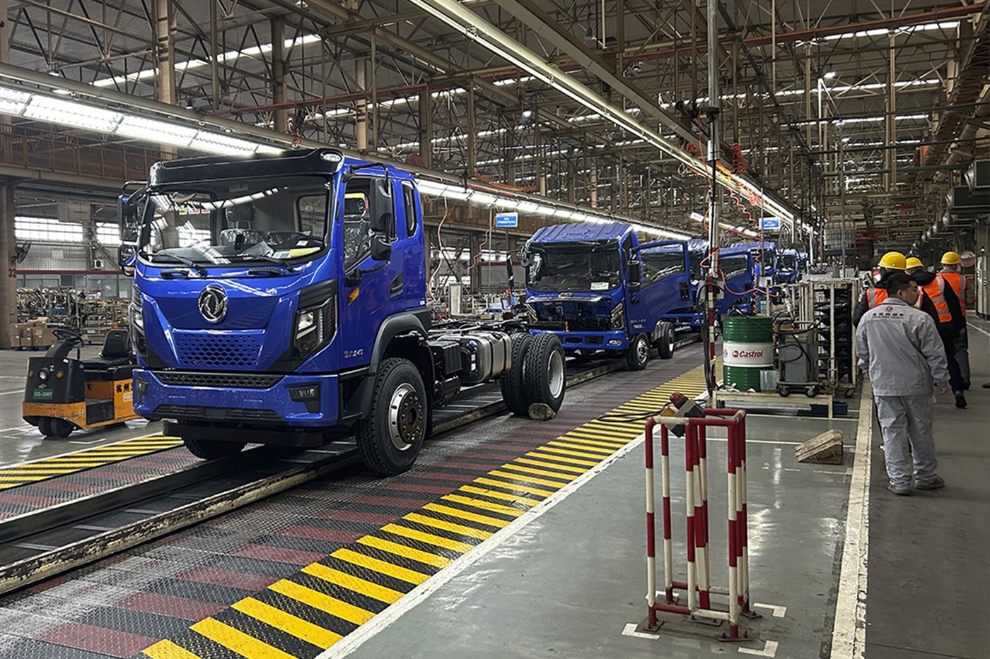 Третьим и ключевым объектом визита стал основной завод Dongfeng Commercial Vehicle Co., Ltd., широко известный под аббревиатурой DFCV. Масштабы производства здесь по-настоящему впечатляют: каждые четыре минуты с конвейера сходит полностью готовый автомобиль.
